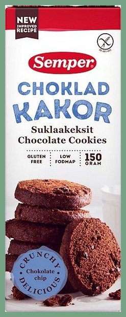 Suklaakeksi Schär gluteeniton 150g. Tämän erinomaisen elintarvikkeen toimituksen kesto verkkokaupasta tilattuna 1-2 päivää. Aineosat: Kasvimargariini (kasvirasva ja -öljy (kookos, auringonkukka), vesi), sokeri, riisijauho, maissitärkkelys, perunajauho, modifioitu pe runatärkkelys, suklaapisarat 6,5% (sokeri, kaakaomassa, kaakaovoi, emulgointiaine (auringonkukkalesitiini), vanilja-aromi), glukoosi siirappi, kaakaomassa (3%), vähärasvainen kaakao (2%), nostatusaineet (ammoniumbikarbonaatti, difosfaatti, natriumbikarbonaatti), su ola, sakeuttamisaineet (guarkumi, hydroksipropyylimetyyliselluloosa, pektiini), aromit. Voi sisältää pieniä jäämiä MAITOA, MUNAA, SO IJAA, MANTELIA. Varma toimituspalvelumme kuljettaa suklaakeksin toimitusosoitteeseen kello 8.00 - 15.00. Turku, Oulu, Helsinki... toisin sanoen kaikkialle Suomeen.