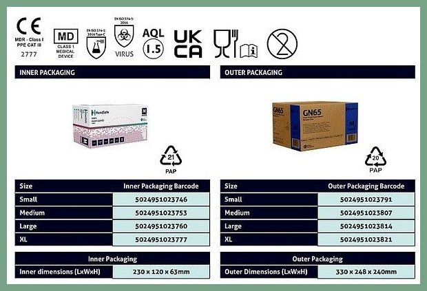 Hinta 4,71€ / RASGN65 täyttää standardien EN455: Medical Gloves for Single Use parts 1,2,3&4 sekä EN420, EN ISO 374-1, EN ISO 374-4 & EN ISO 374-5 vaatimukset. Tämä käsine on luokiteltu luokan I lääkinnälliseksi laitteeksi lääkinnällisiä laitteita koskevan asetuksen (EU) 2017/745 ...VarastossaTarkastele