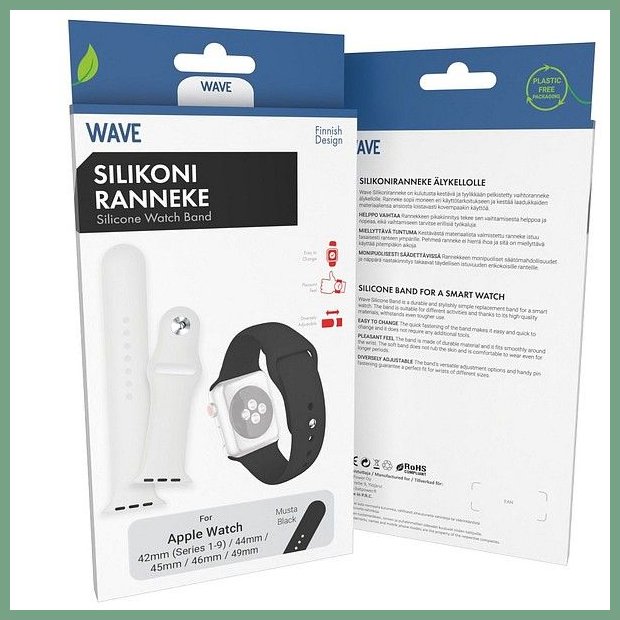 Wave silikoniranneke Apple Watch älykelloille series 1-9. Tämän erinomaisen liikelahjan verkkokauppatilauksen toimitus perille kestää 1-2 päivää. "Wave Silikoniranneke on kulutusta kestävä ja tyylikkään pelkistetty vaihtoranneke älykellolle. Ranneke sopii moneen eri käyttötarkoitukseen ja kestää laadukkaiden materiaaliensa ansiosta loistavasti kovempaakin käyttöä. Tämä ranneke on yhteensopiva Apple Watch 42mm (Series 1-9), 44mm, 45mm, 46mm ja 49mm älykellojen kanssa. Ranneke on väriltään musta. HELPPO VAIHTAA Rannekkeen pikakiinnitys tekee sen vaihtamisesta helppoa ja nopeaa, eikä vaihtamiseen tarvitse erillisiä työkaluja. MIELLYTTÄVÄ TUNTUMA Kestävästä materiaalista valmistettu ranneke istuu tasaisesti ranteen ympärille. Pehmeä ranneke ei hierrä ihoa ja sitä on miellyttävä käyttää pitempiäkin aikoja. MONIPUOLISESTI SÄÄDETTÄVISSÄ Rannekkeen monipuoliset säätömahdollisuudet ja näppärä nastakiinnitys takaavat täydellisen istuvuuden erikokoisille ranteille.". Nopea toimituspalvelumme kuljettaa tilauksen toimitusosoitteeseen kello 8.00 - 15.00. Helsinki, Pori, Espoo, Vantaa... siis minne tahansa Suomeen.
